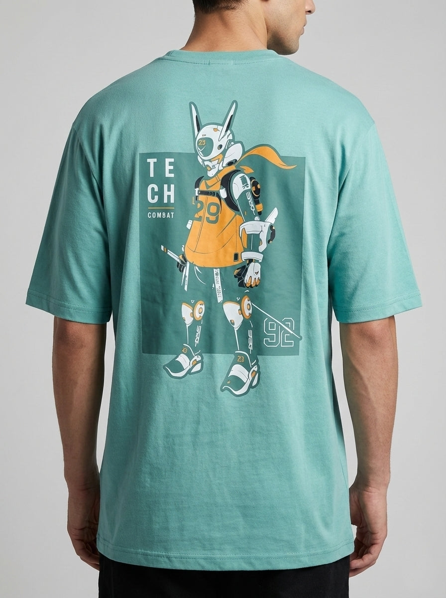 This light teal t-shirt features a playful cartoon character graphic on the front. Made from premium cotton, it provides a soft and breathable feel for all-day wear. (95%)
